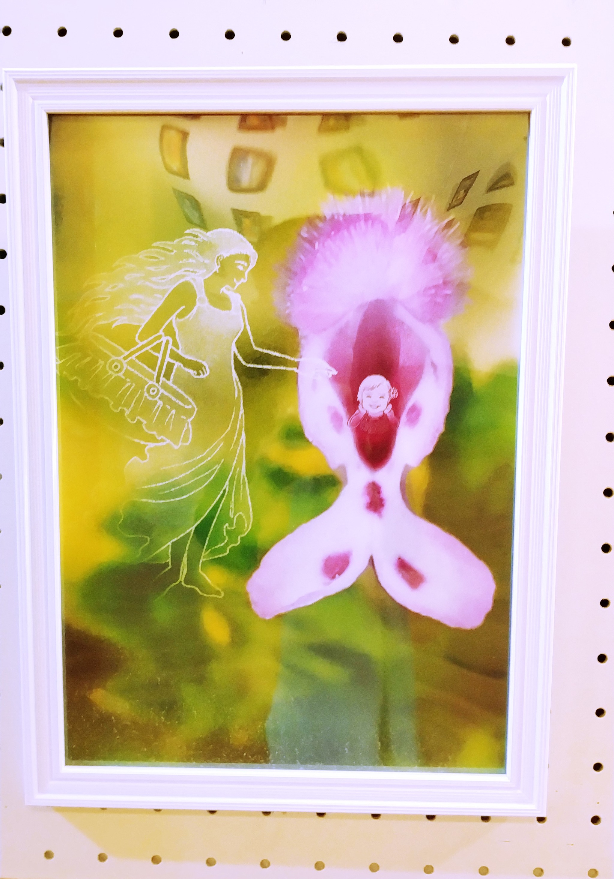撮った植物の写真と手描きの妖精を合わせたデジタルアートなど