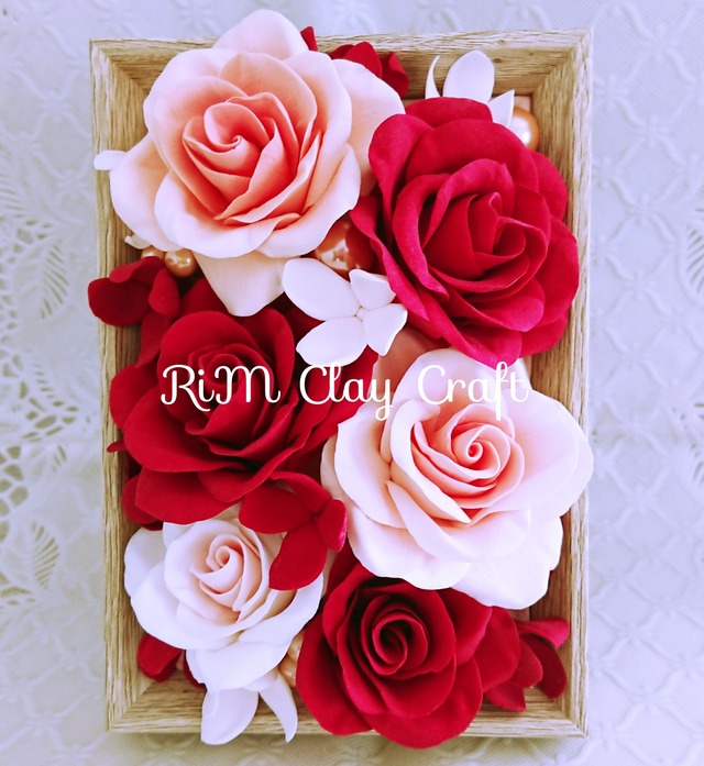 粘土で制作したフラワーアレンジメントを中心とした母娘2人のお店です。花びら1枚1枚から1つ1つ手作りの一点物のプレゼント。