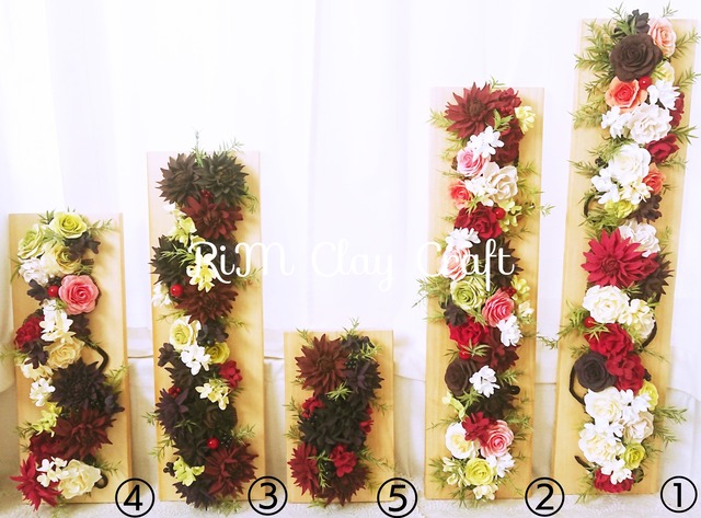 ⑤の一番小さなガーランド どこにでも飾りやすい大きさです 樹脂粘土で作ったワインやパープル、レッドでまとめたシックなアレンジメントです さまざまな高さの華やかな5連のガーランド 1本1本入ってる花の種類と色合いが少しずつ違います 華やかなお花が映えるナチュラルな木を使い可愛くシックな雰囲気に *お使いのスマホやパソコンによって 実際と少し色味が違って見える場合があります 【サイズ】 約 幅18×奥行10×高さ27cm 【粘土花種】 ダリア あじさい 【商品詳細ページ】 https://rimclaycraft.base.shop/items/61368661 【ご購入の前に下をご一読ください】 【ショッピングガイド】 https://rimclaycraft.base.shop/p/00002 【RiM Clay Craftについて】 https://rimclaycraft.base.shop/p/00005