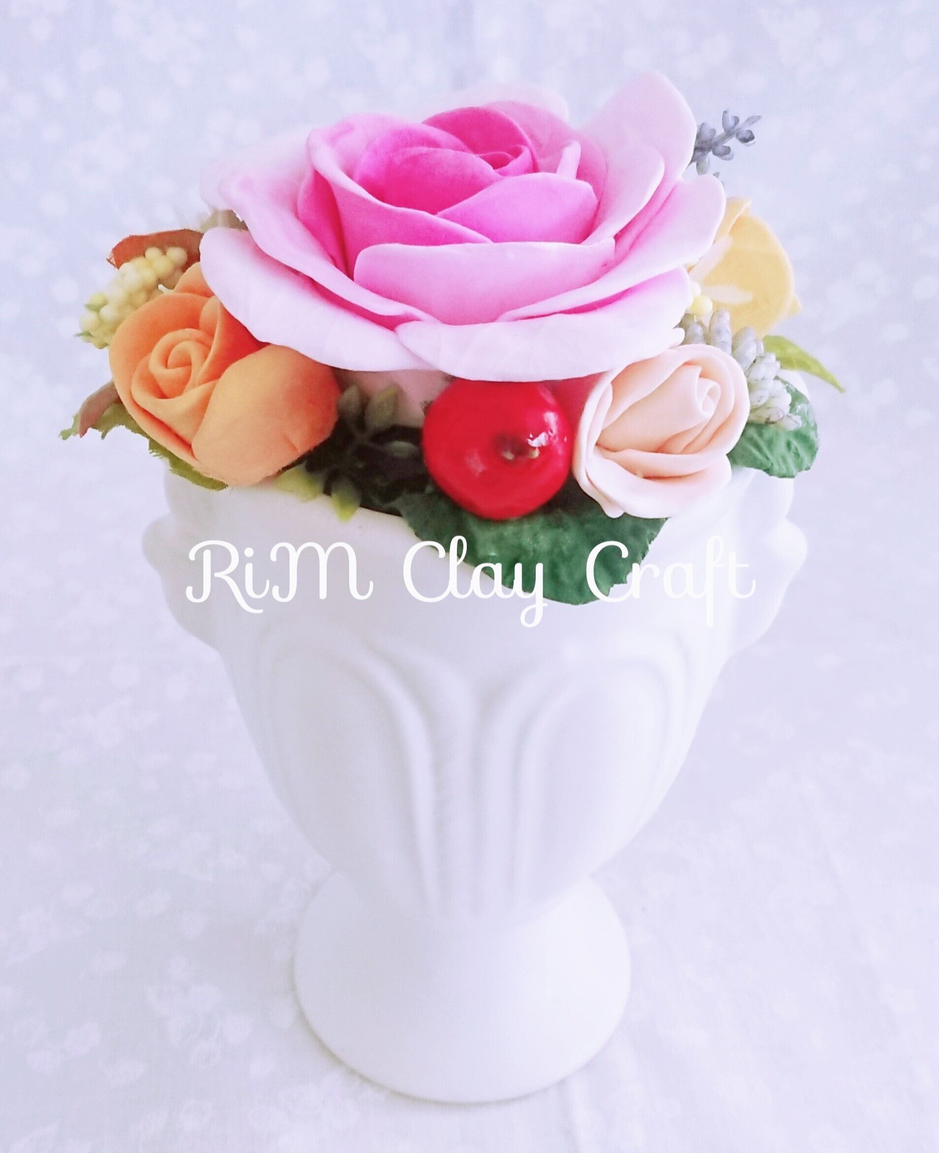 樹脂粘土で作った淡いピンクの薔薇と