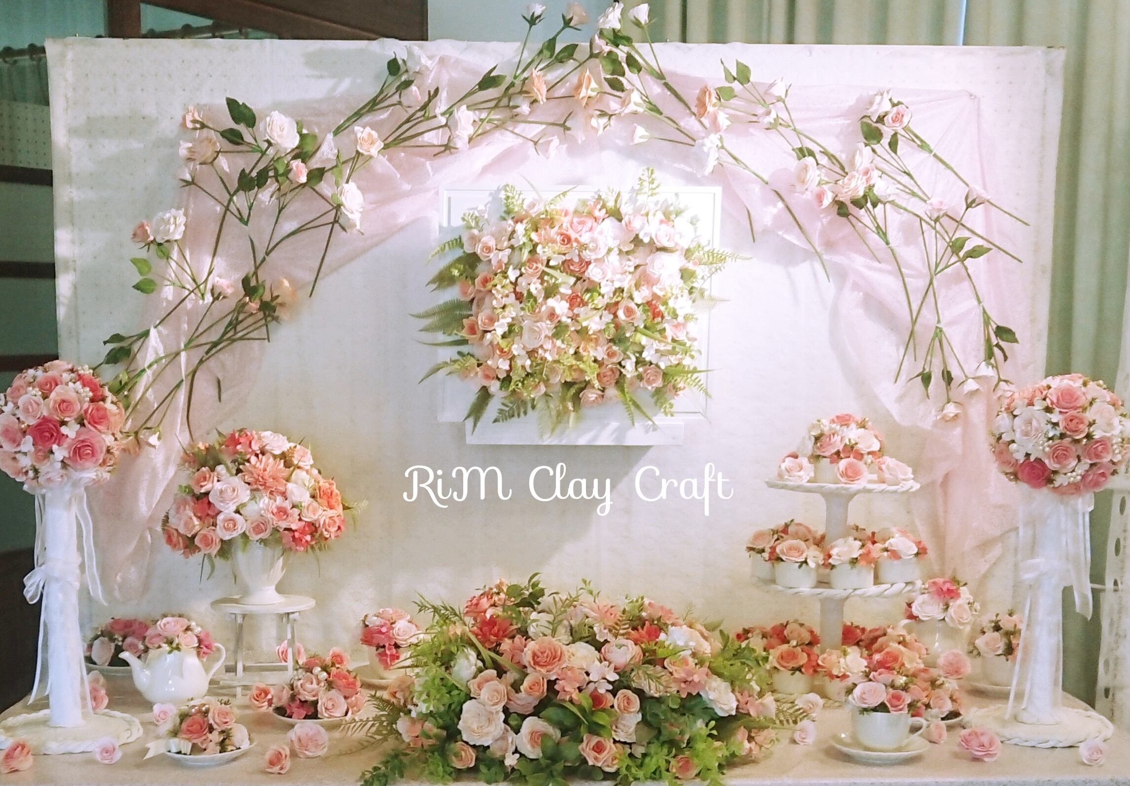 樹脂粘土で作った薔薇・ダリア・ラナンキュラスなどさまざまな種類のピンクの花が詰まっています