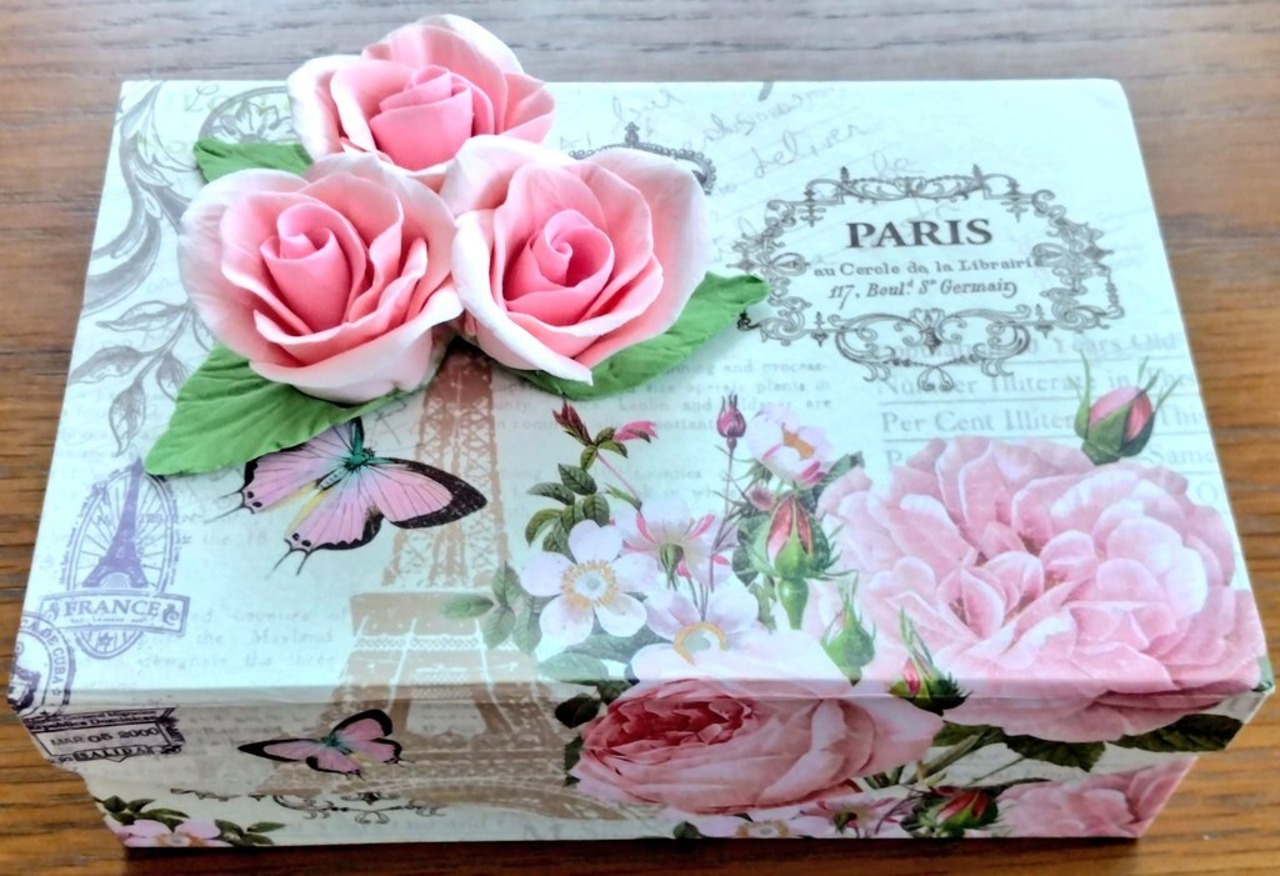 マグネットふた付きの箱に可愛いピンクの薔薇