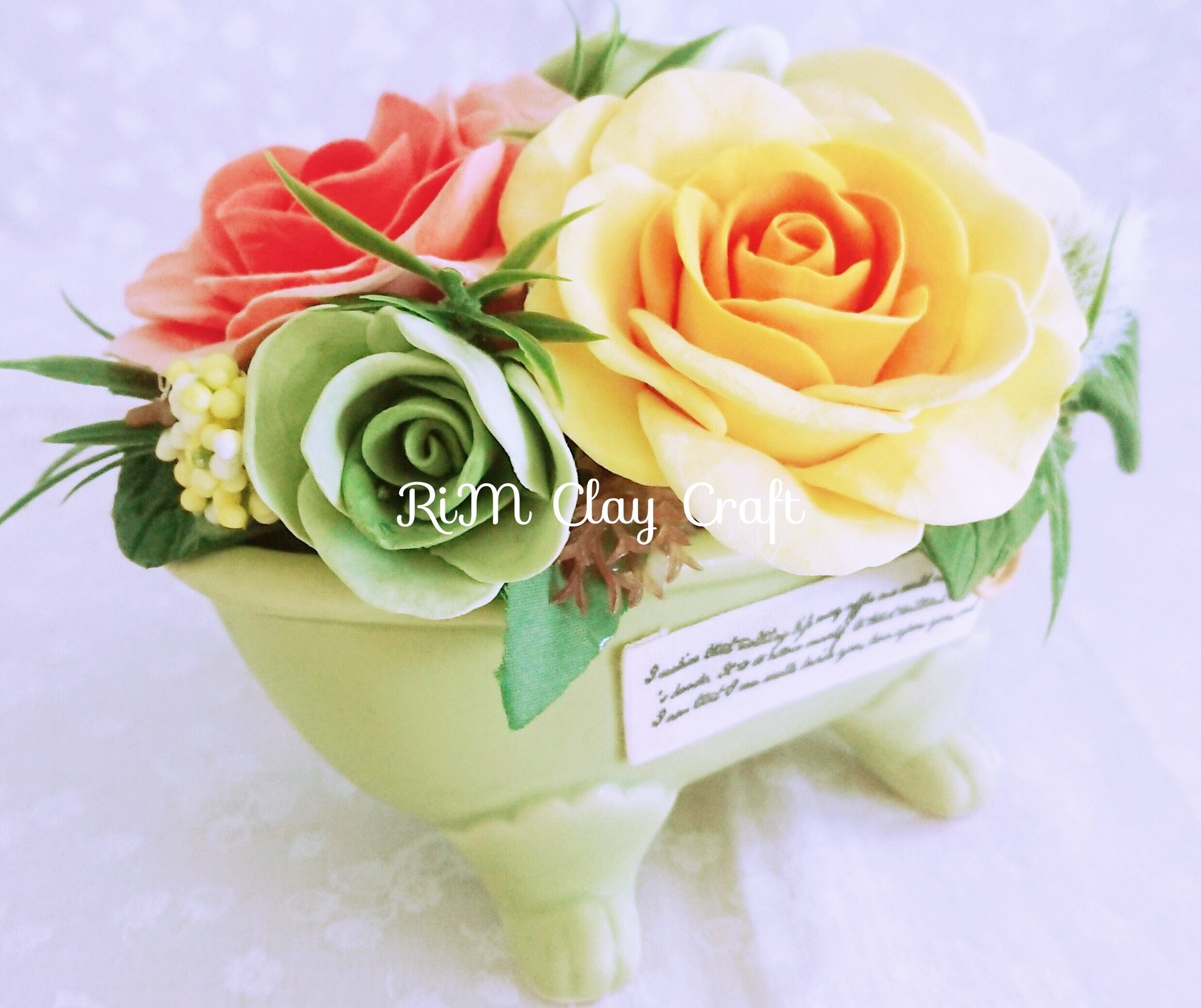 淡いグリーンの器に大きなイエローで爽やかな雰囲気